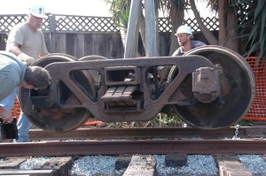 Our neighbors, friends from Sun Microsystems, friends from the Silicon Valley Lines (SVL), and South Bay Historical Railroad Society (SBHRS) model train clubs, and photographers from the Willow Glen Resident newspaper joined our family for the big event. After WP668 was down and secured, we all had a BarBQ lunch, with caboose tours. Some of today’s photos follow. Tomorrow, we replace the fence!