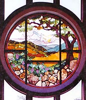On Saturday, stained glass artist Vince Taylor came to visit. We met Vince at the Palo Alto Festival of the Arts years ago. He has made two lovely stained glass windows for us before; we just asked him to make three more for WP668, our backyard caboose. The new glass will fill the 3 bay windows (1 square center plus 2 long side lights) facing away from our house.