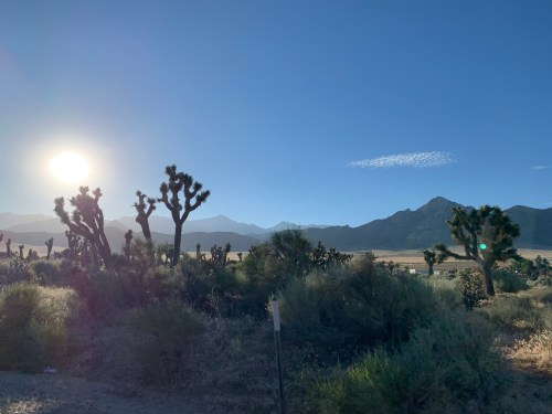 Jessica and I slept at Sandy Flat Campground (near Lake Isabella) last night after a visit to the Miracle hot springs nearby. This morning, we drove thru the Joshua Trees to San Bernardino where she has a meeting. We head to Arizona this afternoon.