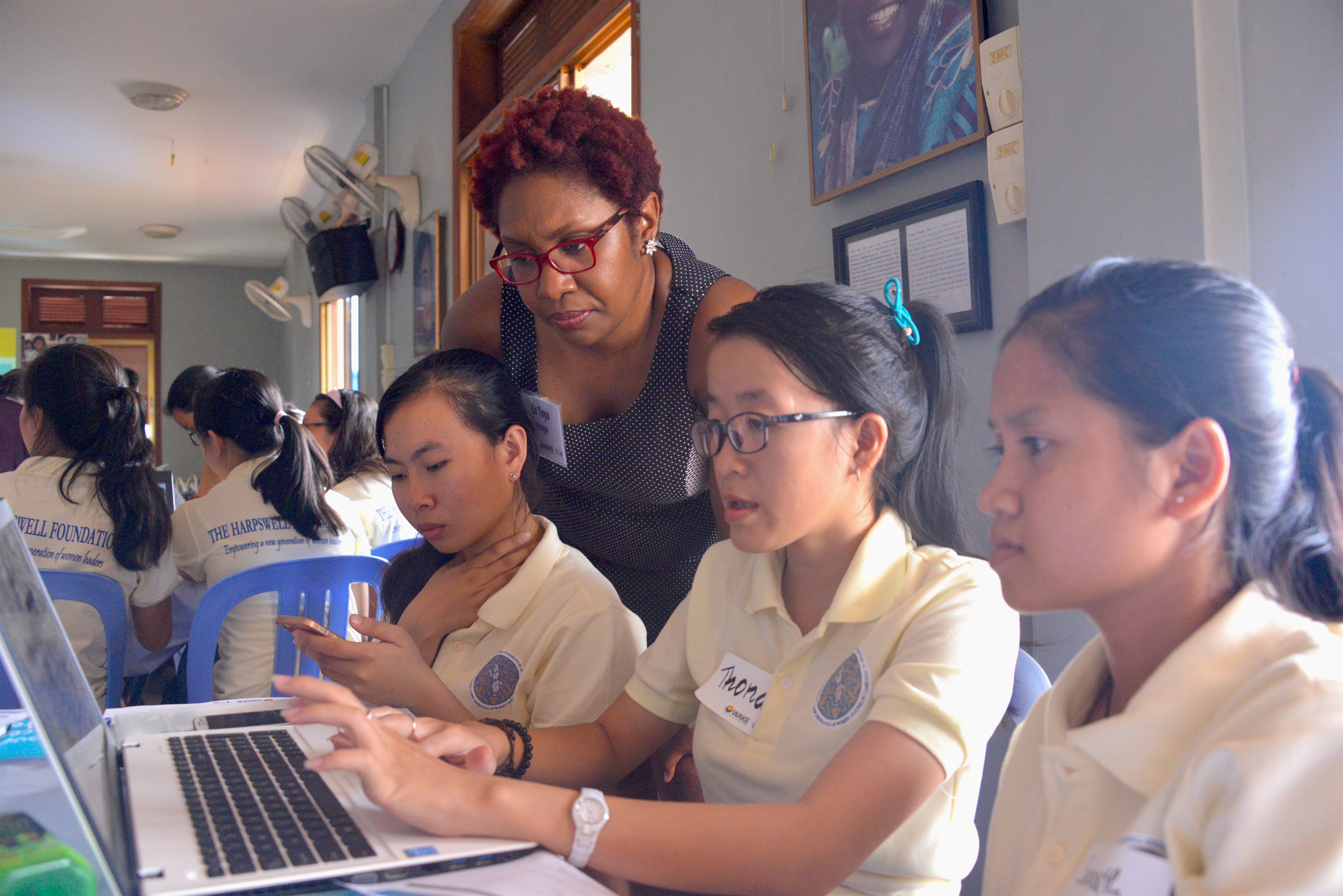 Today I ran a blogging workshop online for 18 women, of whom most were in Cambodia with the Harpswell Foundation school in Phnom Penh.  The women are college students in Psychology, International Relations Agronomy, Mathematics, Medicine, Communications, and Dentistry, among other study disciplines.