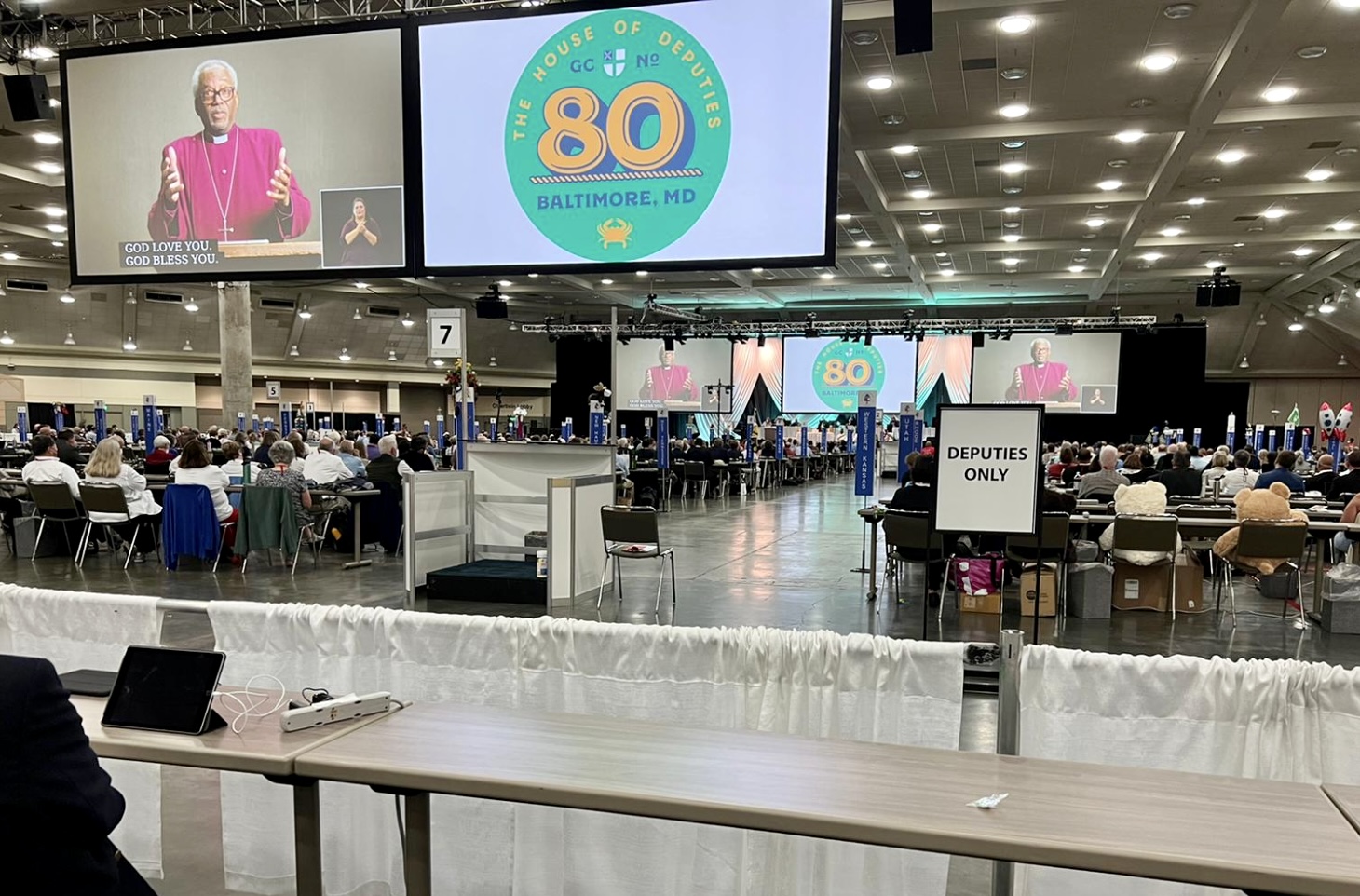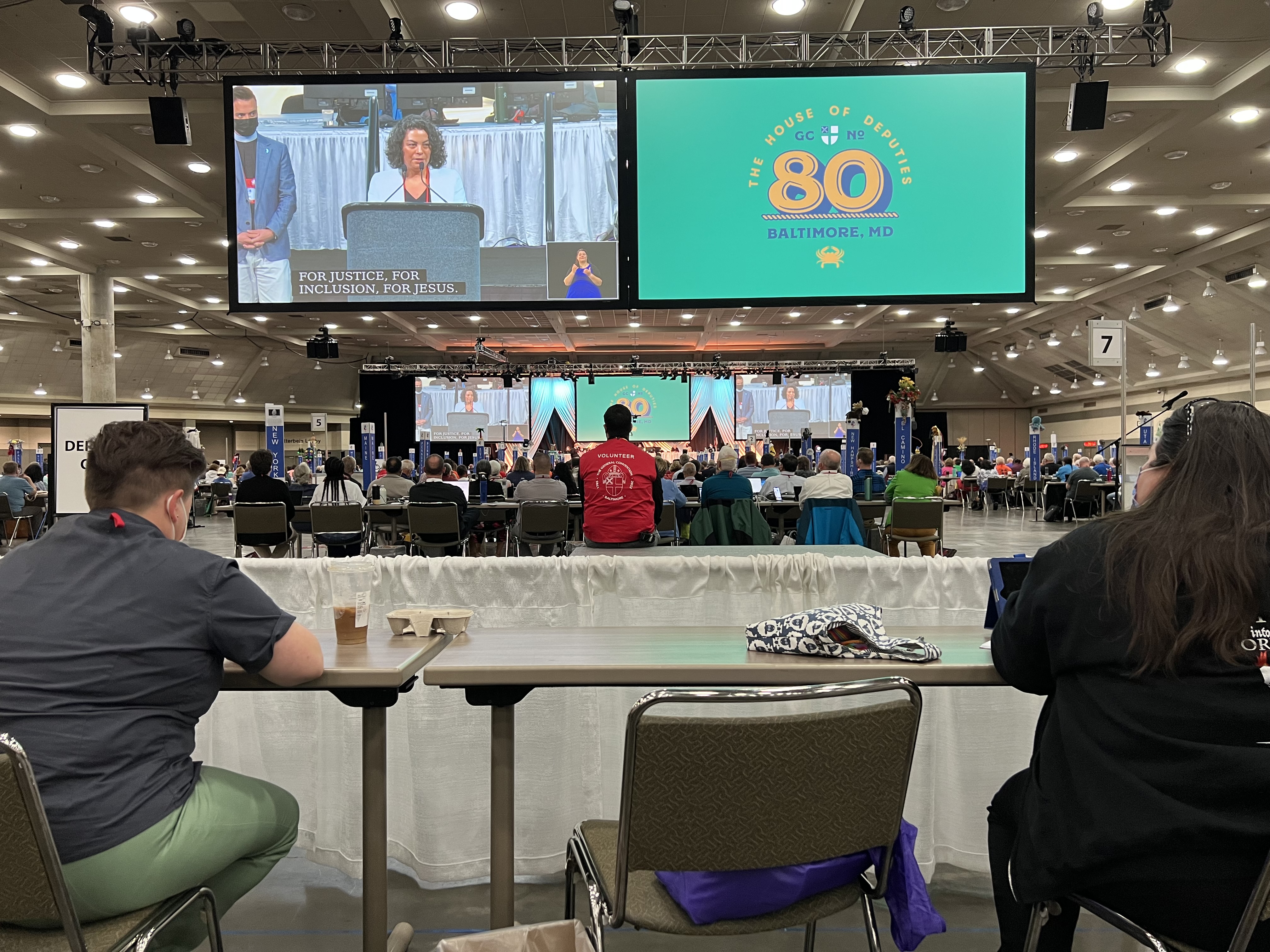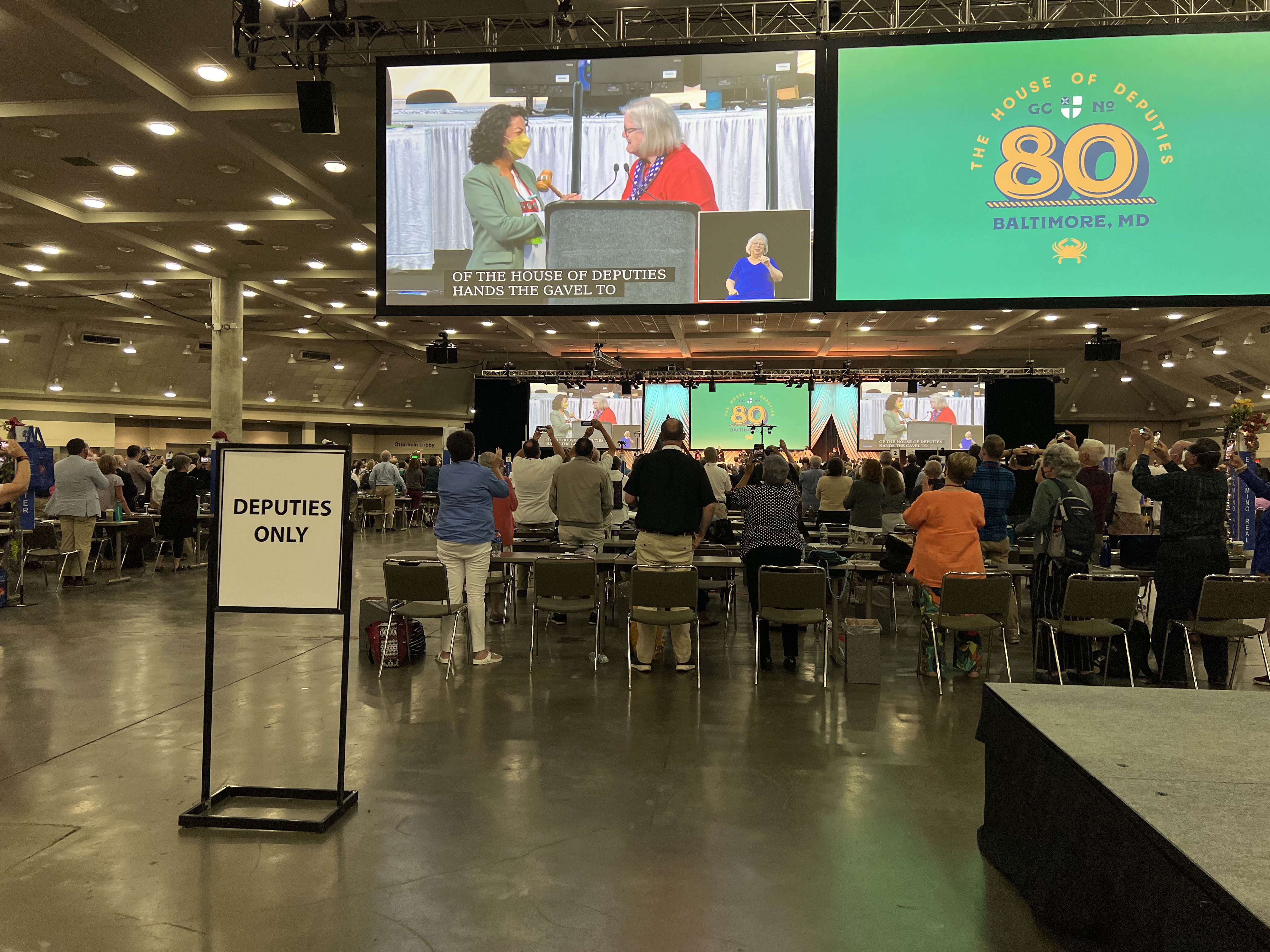 This is the fourth and final legislative day for the deputation of the Episcopal Diocese of El Camino Real (ECR) at the General Convention (“GC-80”) in Baltimore, Maryland. Today, after morning worship and an inspiring sermon by the newly-elected President of the House of Deputies, Julia Ayala Harris, we discussed changes to the Book of Common Prayer, heard a health report by Dr. Rodney Coldren (only 26 COVID cases reported during GC-80) who thanked us for protecting our fellow deputies, celebrated many House of Deputies awards by outgoing President, the Rev. Gay Clark Jennings, thanked many remarkable people who have worked for years to make this event happen, planned for GC-81 in Louisville in two years, and filled a variety of positions by election. We particularly celebrated the ten years of the Rev. Gay Clark Jennings as HofD President and gave her many standing ovations.