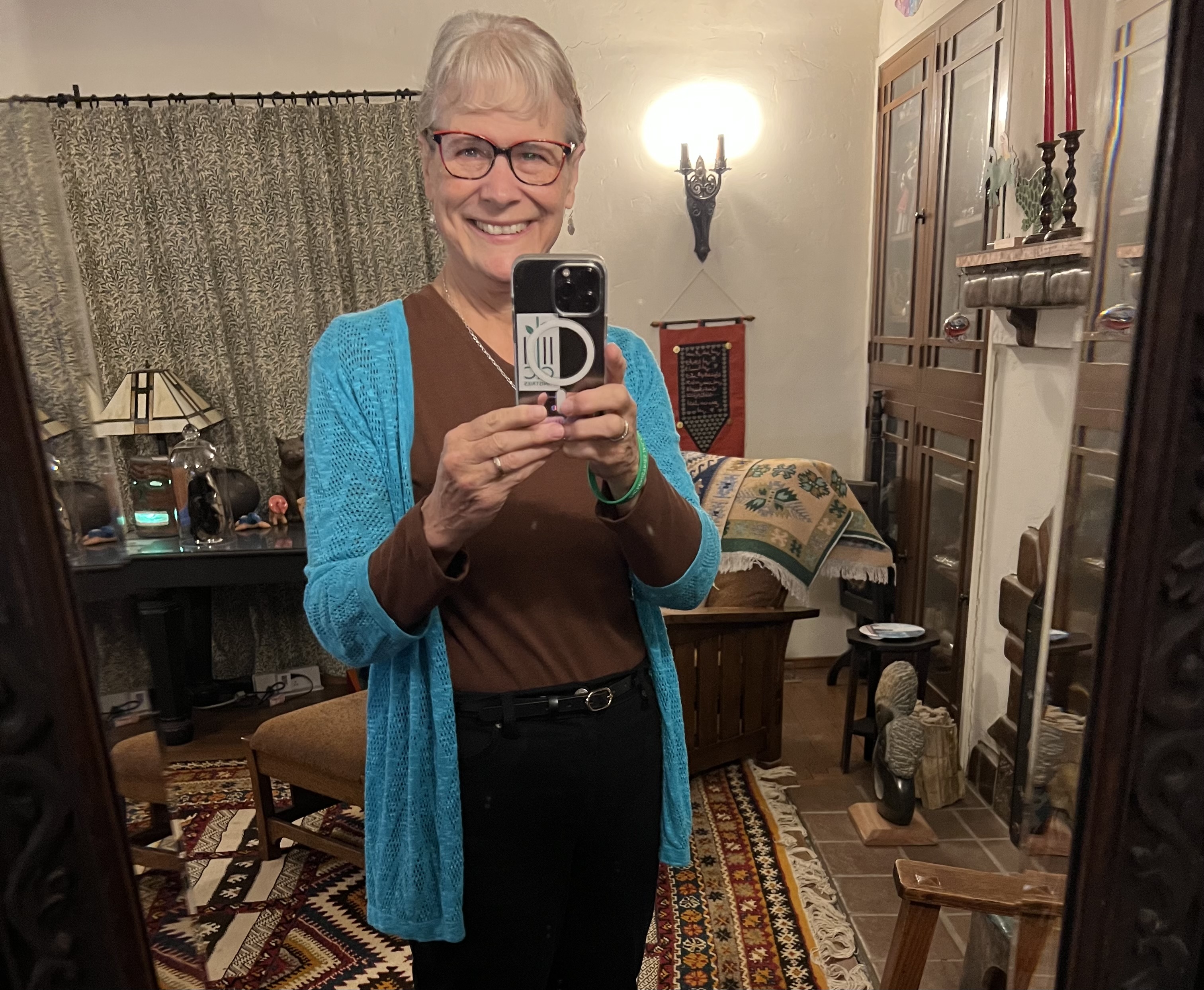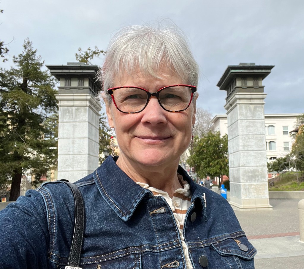I enjoy shopping for clothes to fit my new form (usually used, by way of ThredUp and other thrifty online sources), and am still working out what style, design, and fit is best for me in each season. I have some unusual constraints on this. As a Chaplain in the county jail, for work I cannot wear clothes that are predominantly red, blue, or other gang colors. Also, as a new Grandma, I need to consider how to manage a very active 9 month old who likes to grab, pull, and chew on me. For my birthday later this month, my husband John treated me to a shopping trip at the Sézane shop in San Francisco with my friend Laura Biché. John hates to shop, so buying my own gift is a present to him. Last weekend, I wore one of the Sézane dresses I bought on our date night, seeing “Shakespeare in Love” by Silicon Valley Shakespeare.