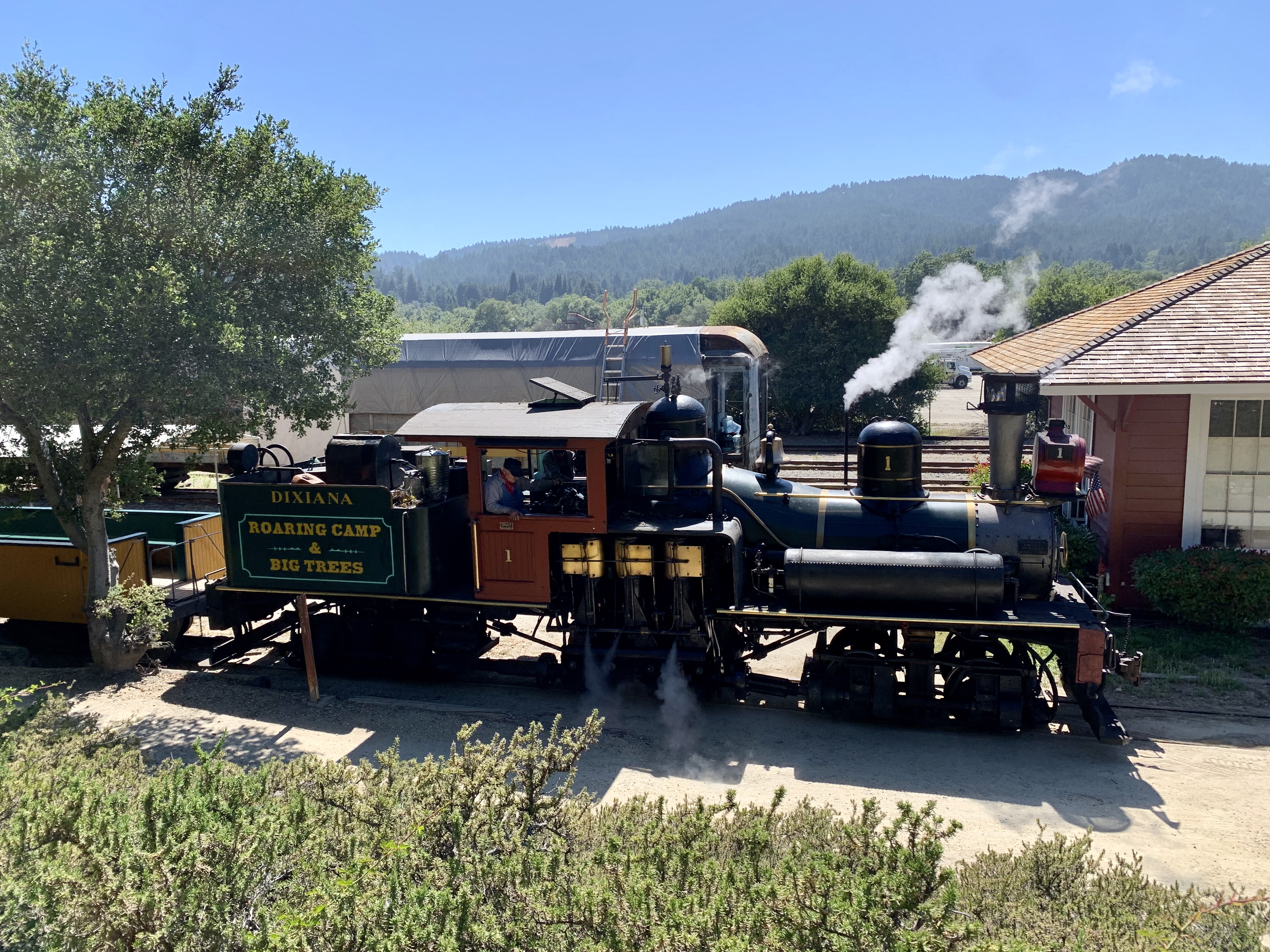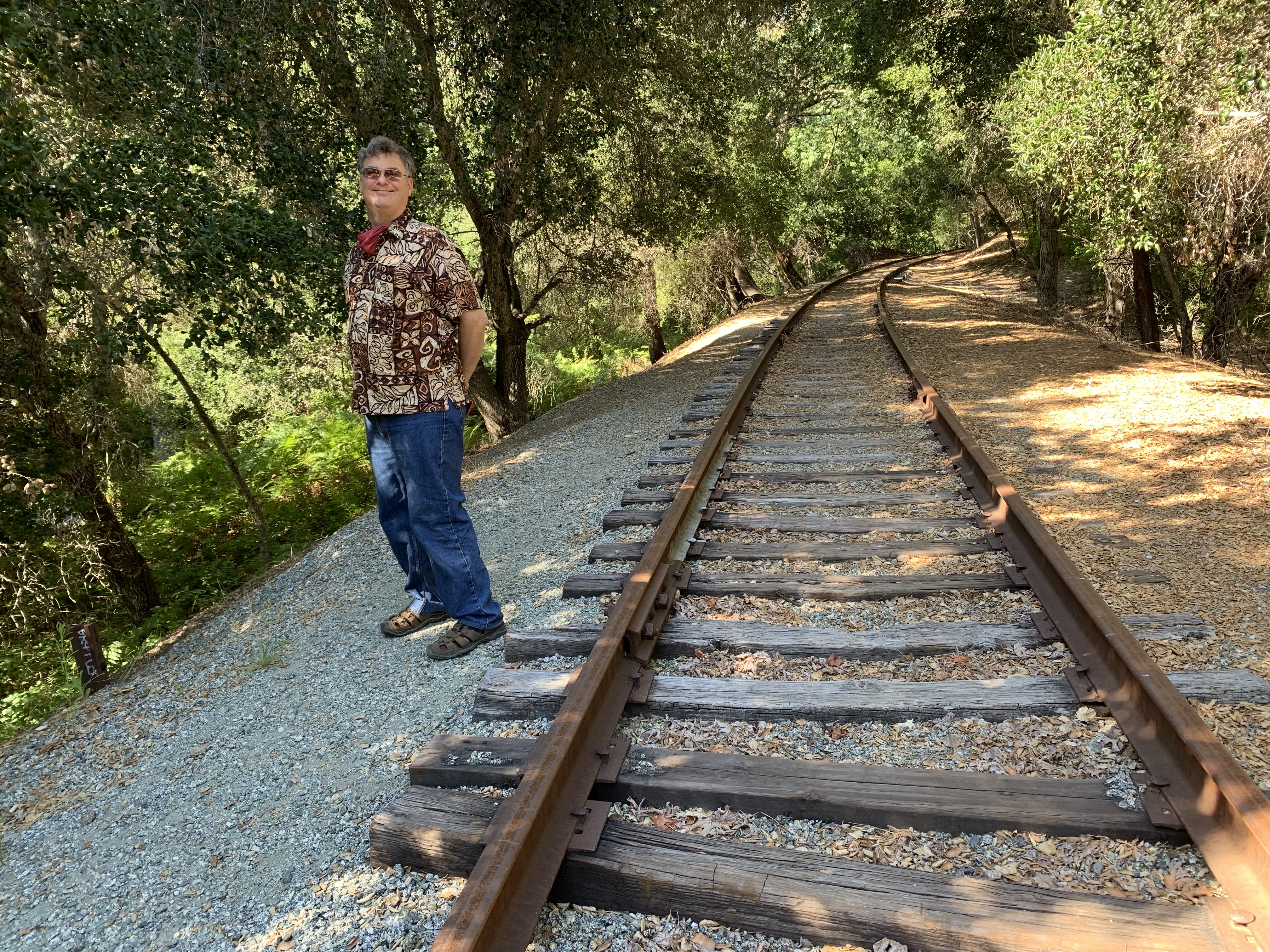 Some places we tried were clearly too crowded for comfort, so after admiring the beaches, and Roaring Camp steam engine from the car, we went for a walk along the Santa Cruz, Big Trees and Pacific rail line, in Felton. An almost-never-used rail line is a great place to walk, away from both people and poison oak.