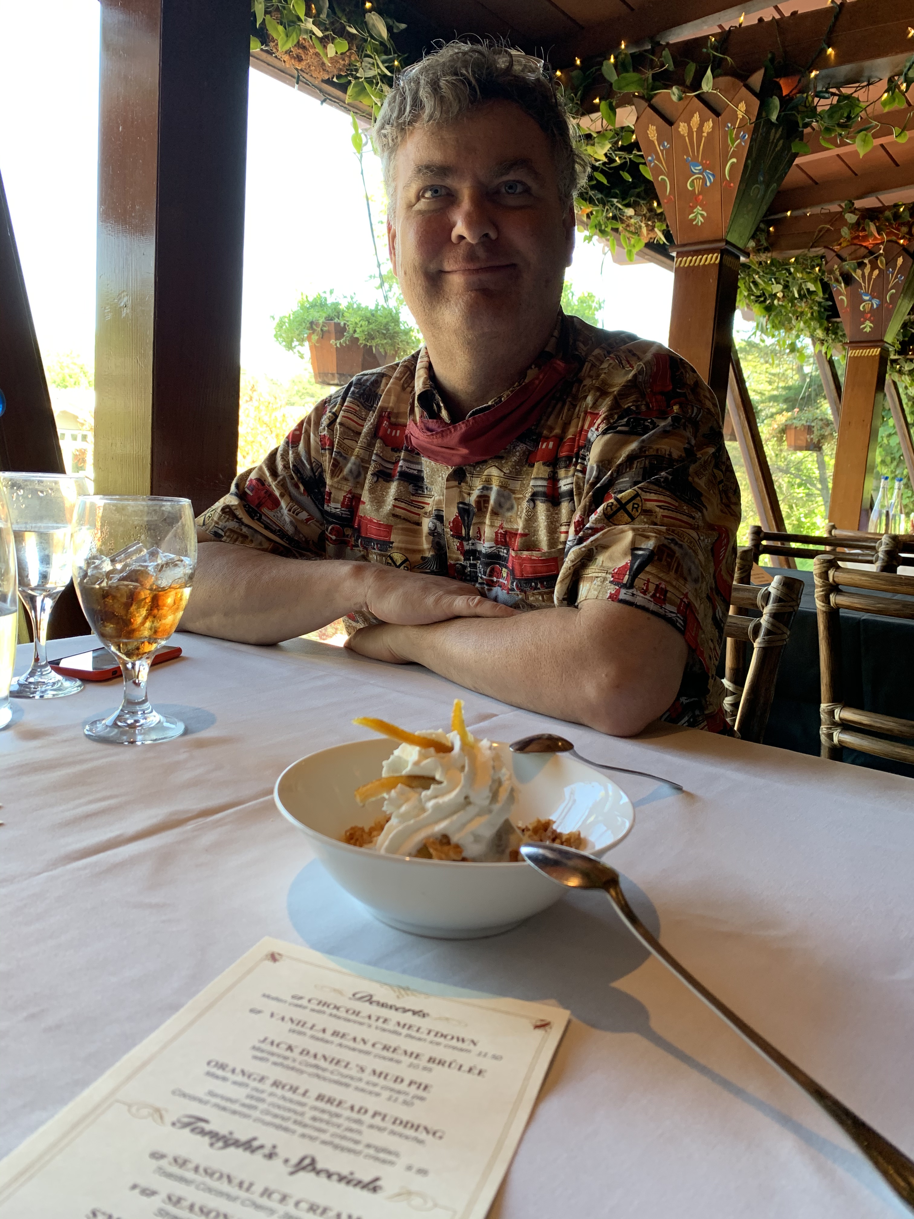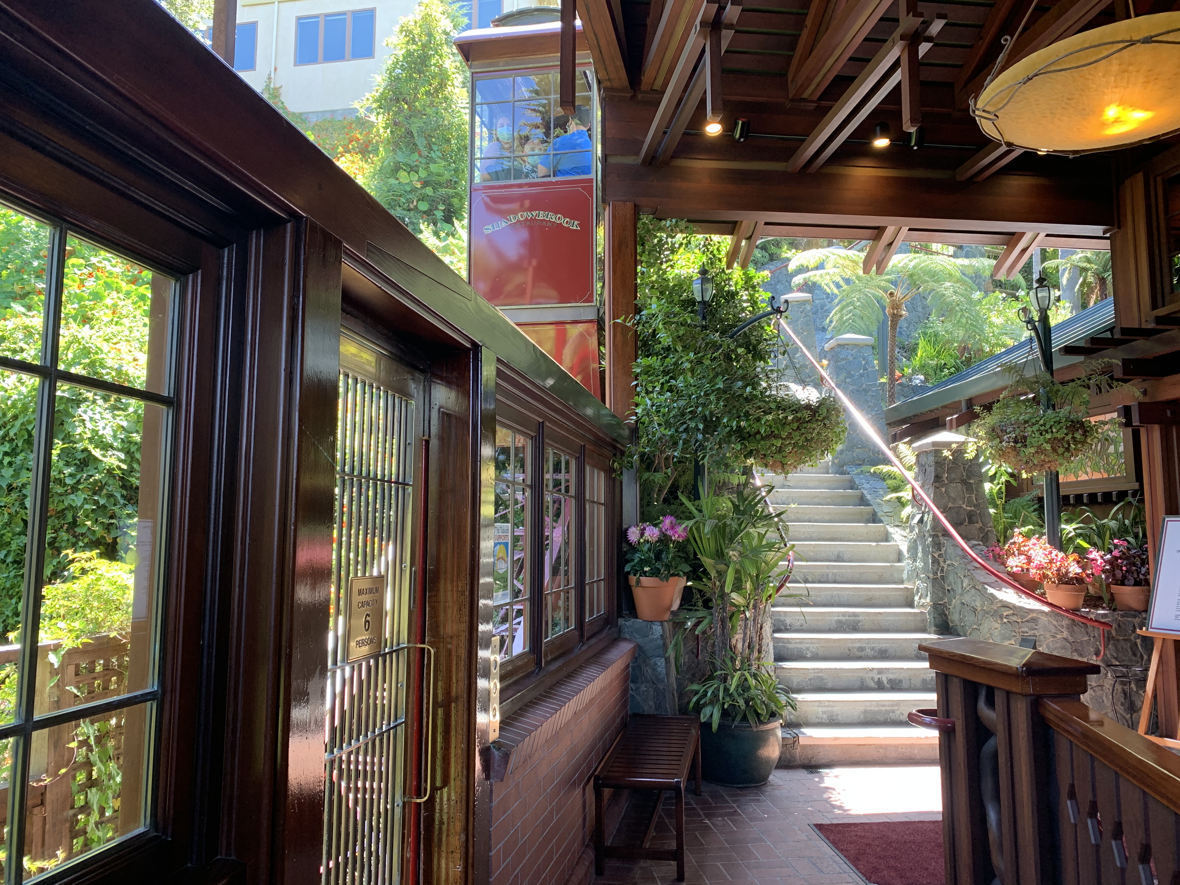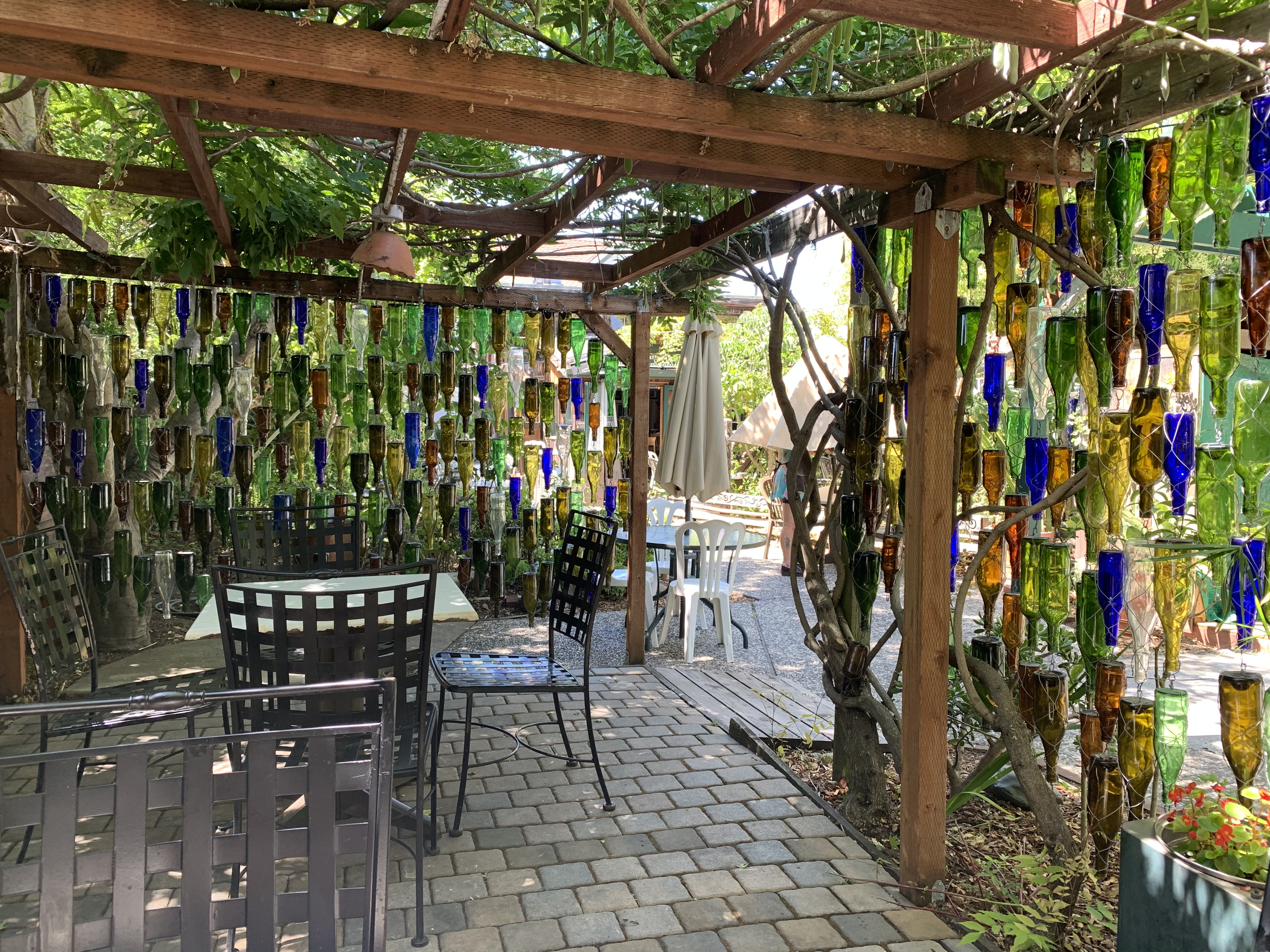 Some of our memorable meals included dinner in the redwoods at Casa Nostra in Ben Lomond, and a delicious lunch at the The Crepe Place in Santa Cruz in an outdoor room with glass bottle walls. We had fun drinking Barbera wine in the glasses made for our wedding twenty years ago. We particularly enjoyed lunch at Shadowbrook Restaurant in Capitola, the only place where we ate indoors. We arrived early in the afternoon and were seated in a very large room which was empty when we arrived and had only two other tables filled by the time we finished.