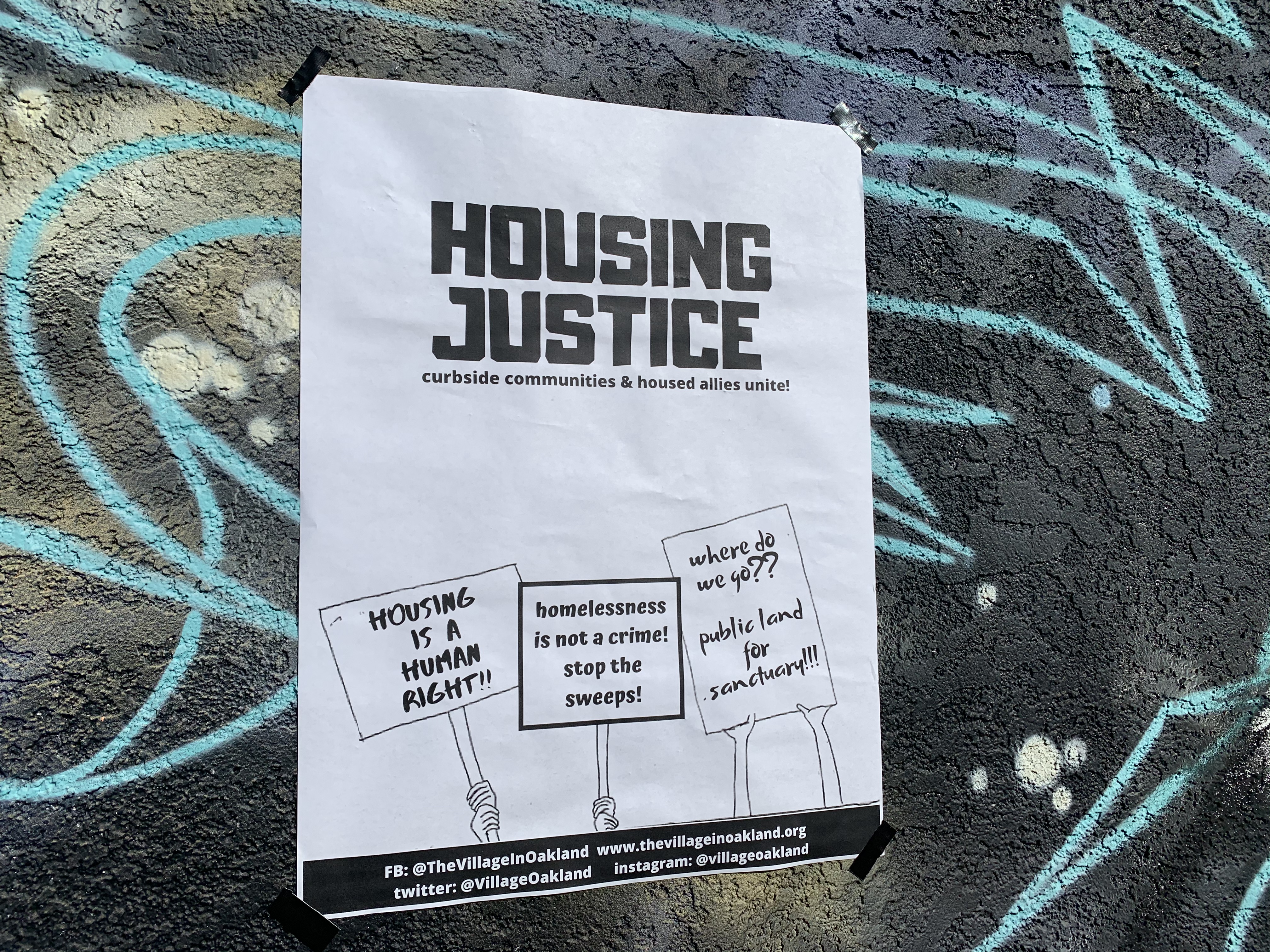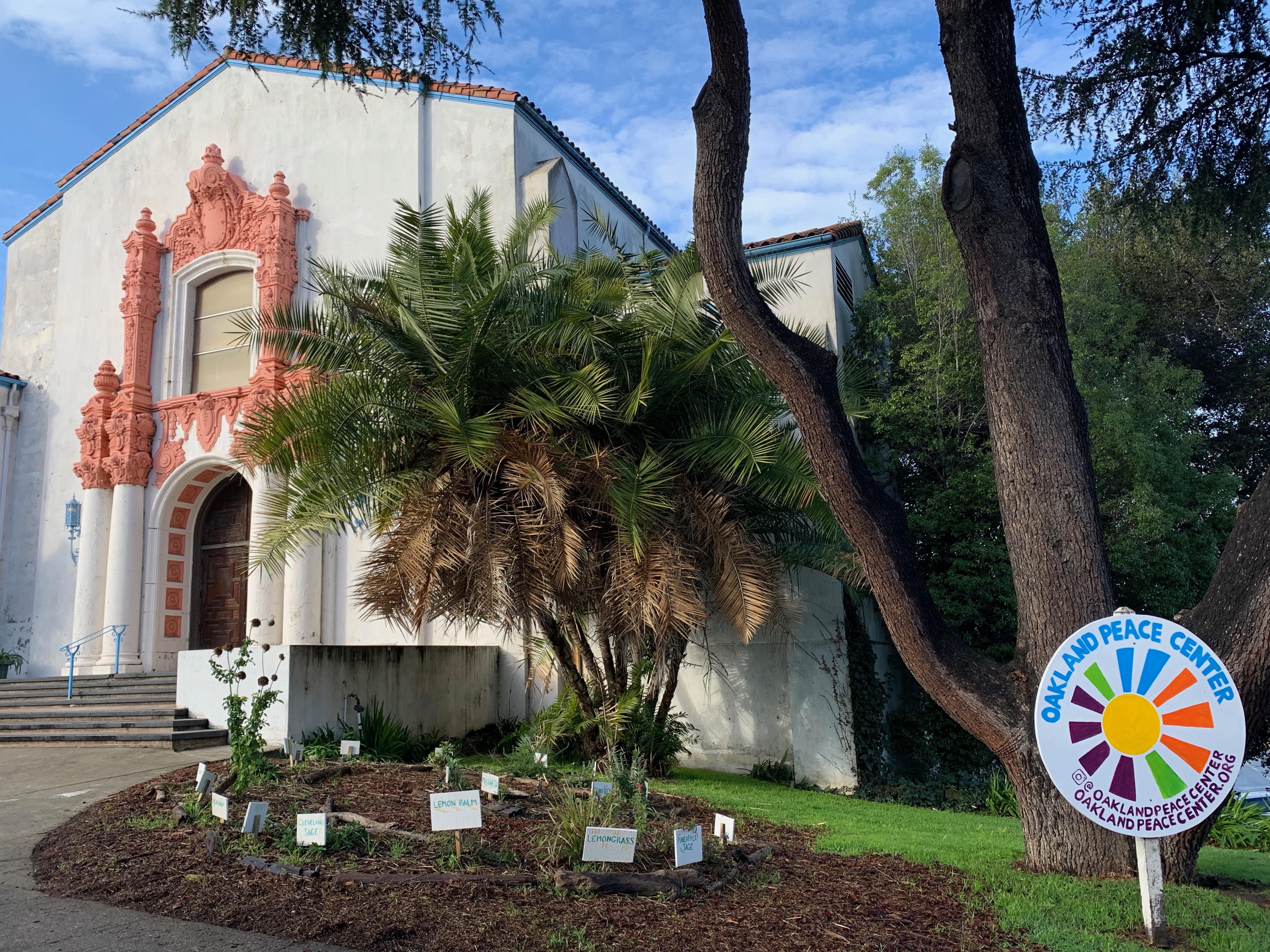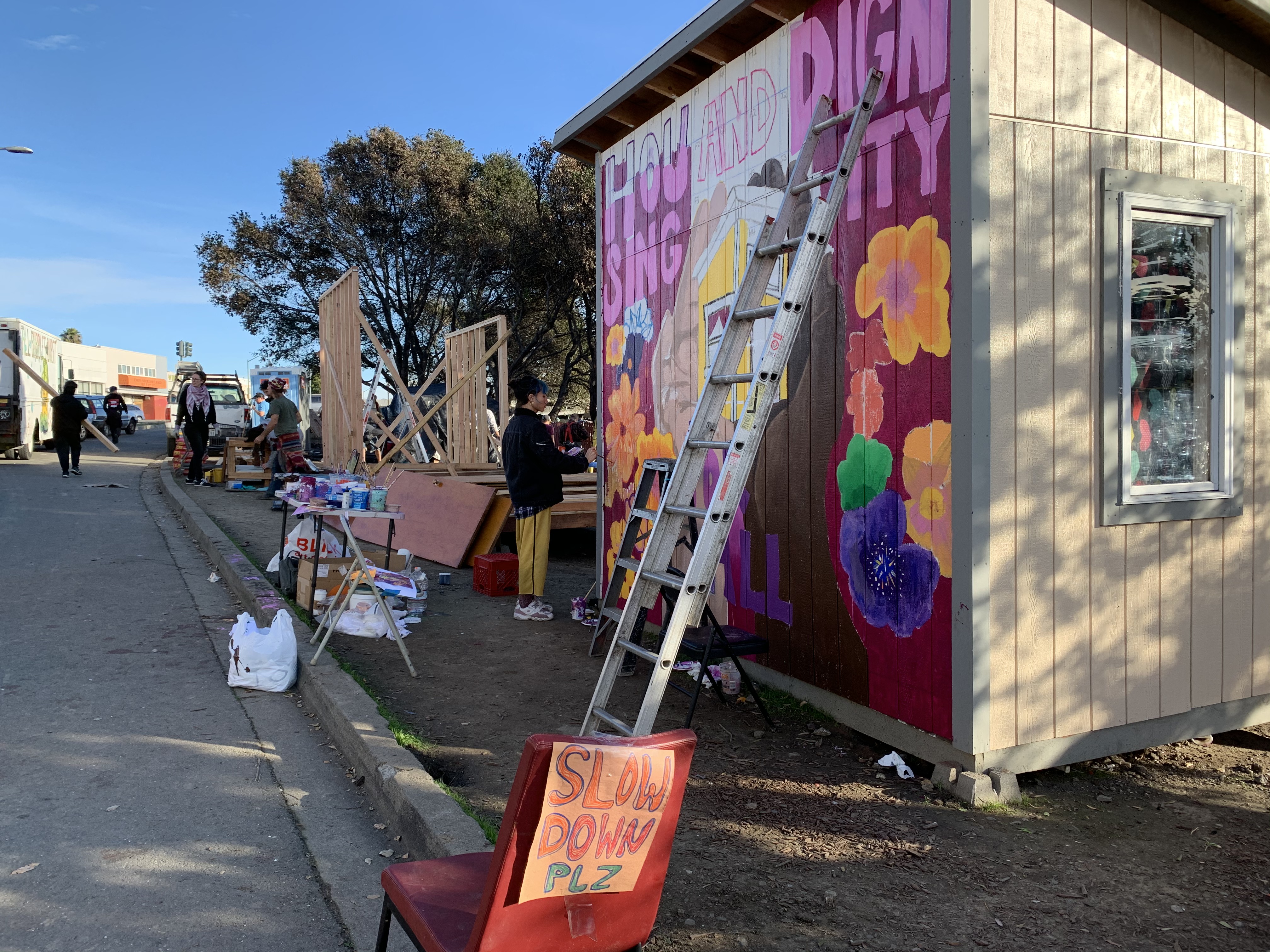 This is only the second time PSR  has offered the class, so our professor Dr. Joyce del Rosario is experimenting with how it should best go. Our home base for the three community days was the Oakland Peace Center, where Executive Director Sandhya Jha was our host. (Oakland Peace Center was also where a different class I was in visited the “Insider | Outsider: Visionary Arts by, for, and about the Incarcerated and Formerly Incarcerated” exhibit last year.) This week, our class put up posters, helped to create tiny homes and a garden for The Village (which works to create and support curbside communities, aka homeless encampments), visited the East Bay Meditation Center, joined the Martin Luther King Day rally at Frank Ogawa Plaza, and helped run a community vision day for the Oakland Peace Center.