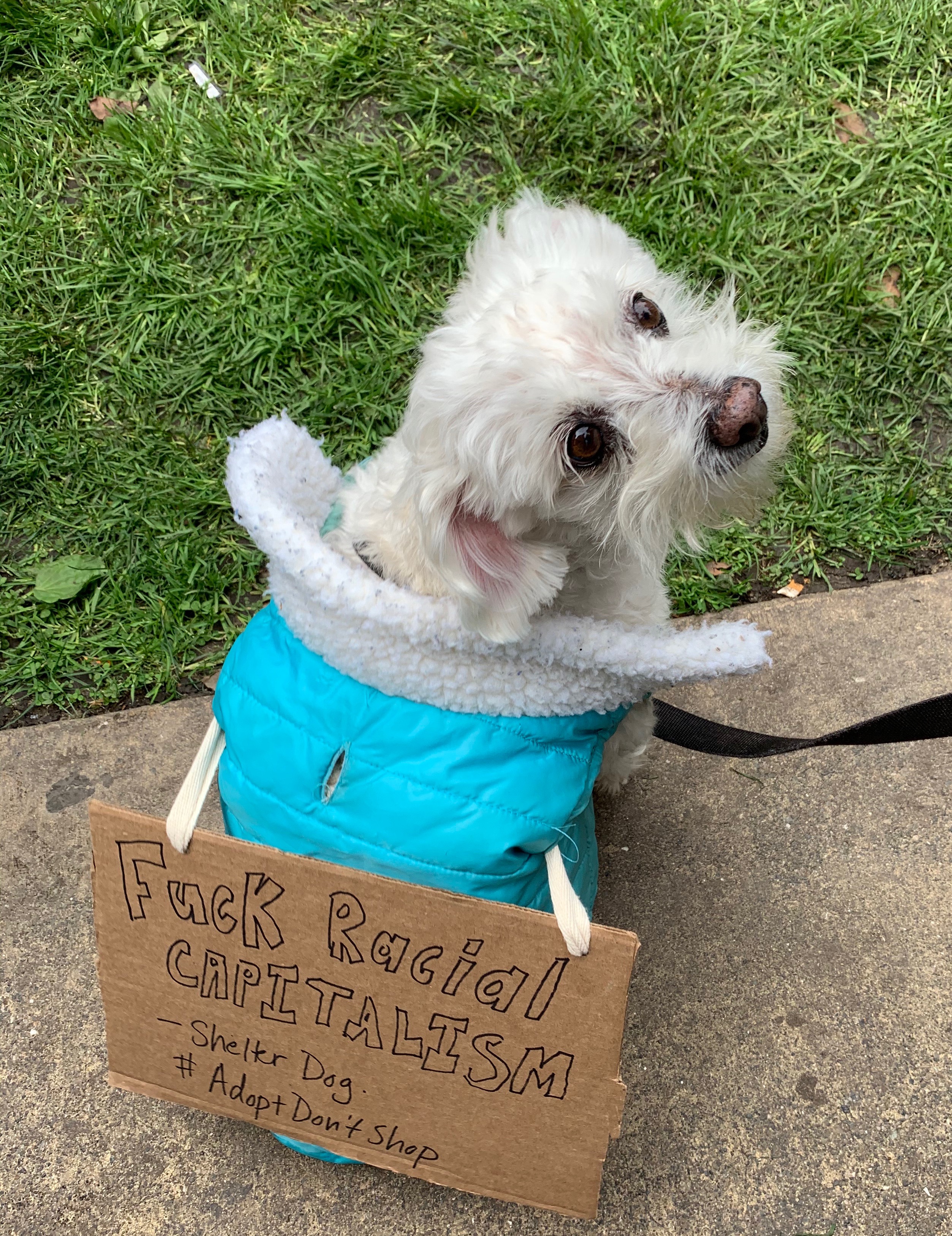 Protest dog, Oakland, Martin Luther King Day, 20 Jan 2020