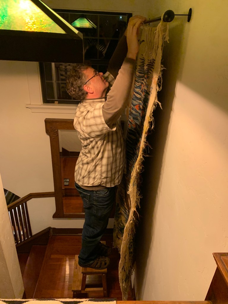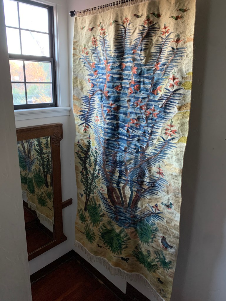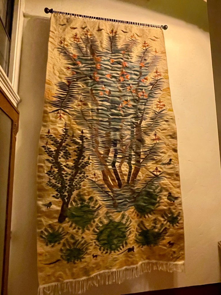 To celebrate my finishing writing my Master’s thesis, John surprised me with a large tapestry from the Wissa Wassef Art Center, Giza, Egypt. Normally for a big family celebration, we would go out to dinner or maybe on a trip, but during the COVID-19 pandemic lockdown, that is not possible.
