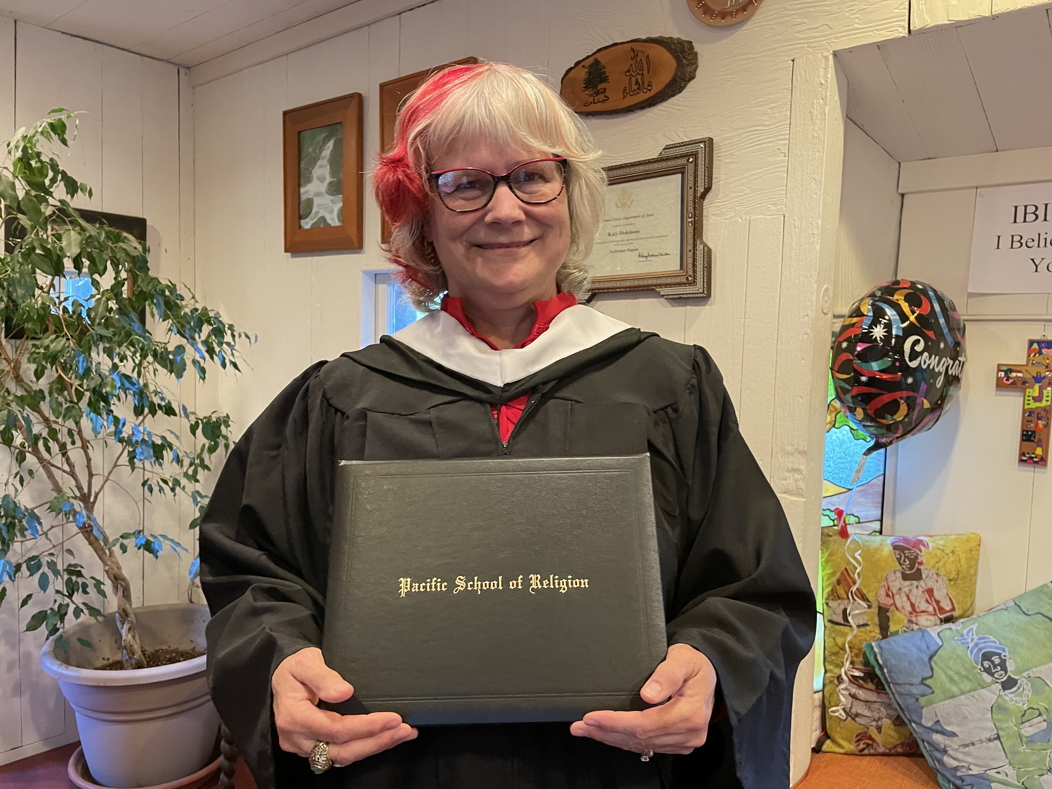 Katy Dickinson GTU – MA Diploma and hood, May 2021