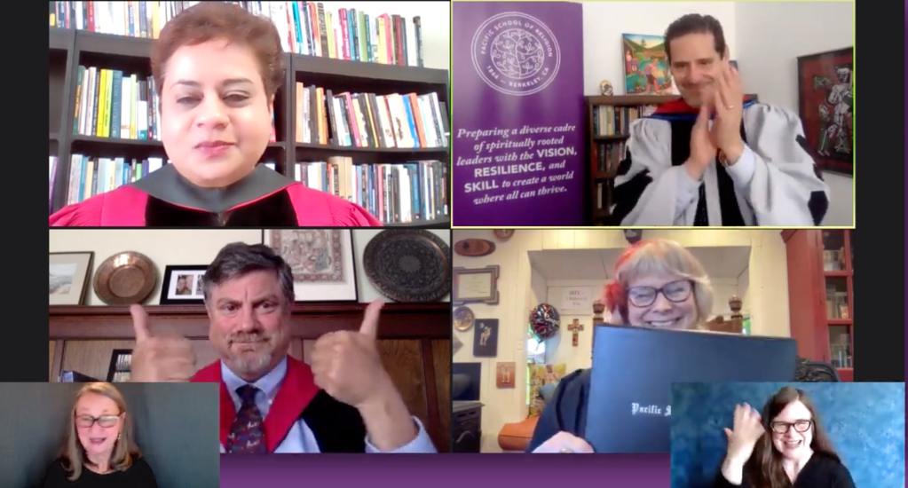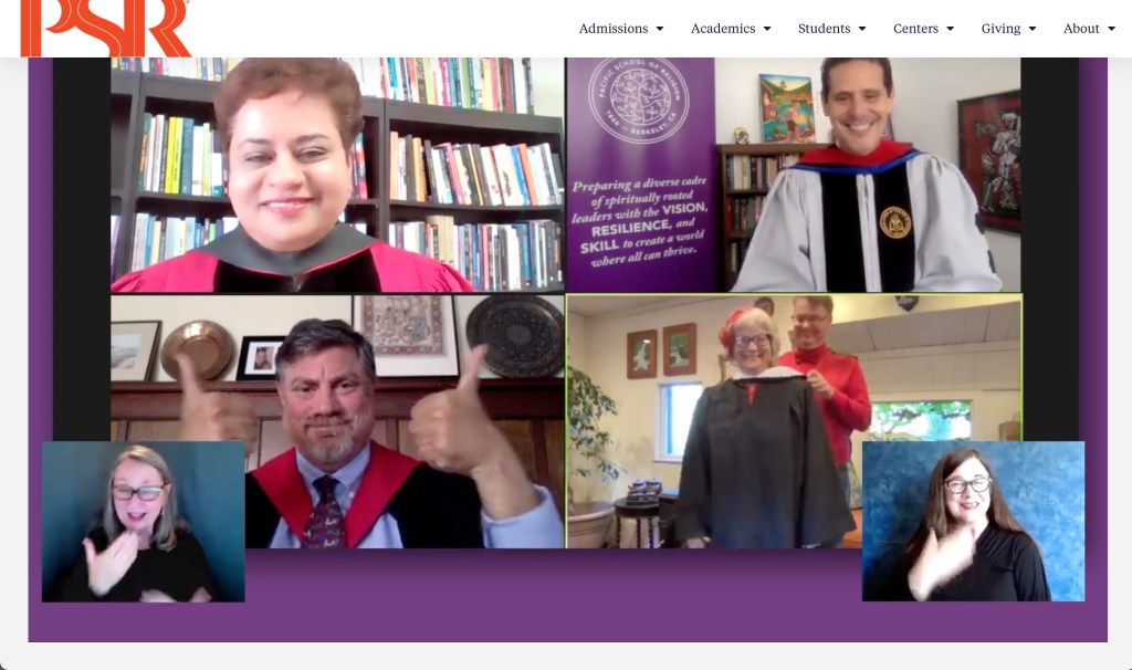 On 19 May 2021, I was graduated (virtually) with a Master of Arts degree from the Graduate Theological Union (Berkeley, California), followed by a second graduation on 23 May 2021 from Pacific School of Religion (part of the GTU consortium) with my Master’s hood and a Certificate of Spirituality and Social Change. My thesis title was “Range of Chaplain Engagement with Prisoners”. This will (eventually) appear in the ProQuest dissertation and thesis database. Thanks for the loving and patient support of my family, friends, and community. Hooray!