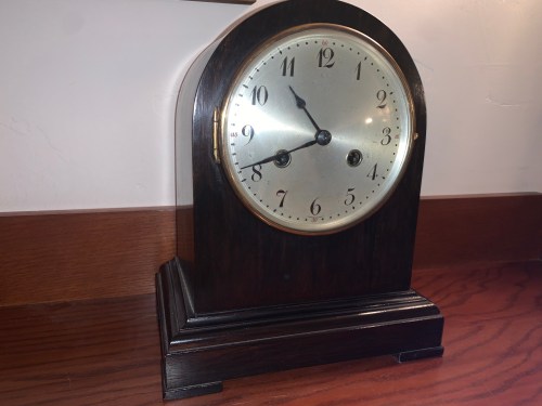 The Junghans chiming mantle clock was a wedding present in 2000 from John’s parents. It was purchased by John’s great-grandfather Johannes Plocher in Holzhauzen, Germany. Joannes and his wife Anna gave it to their son (John’s grandfather), Karl on his wedding Adelia, in 1930. I love the art deco design on the clockworks inside the case.