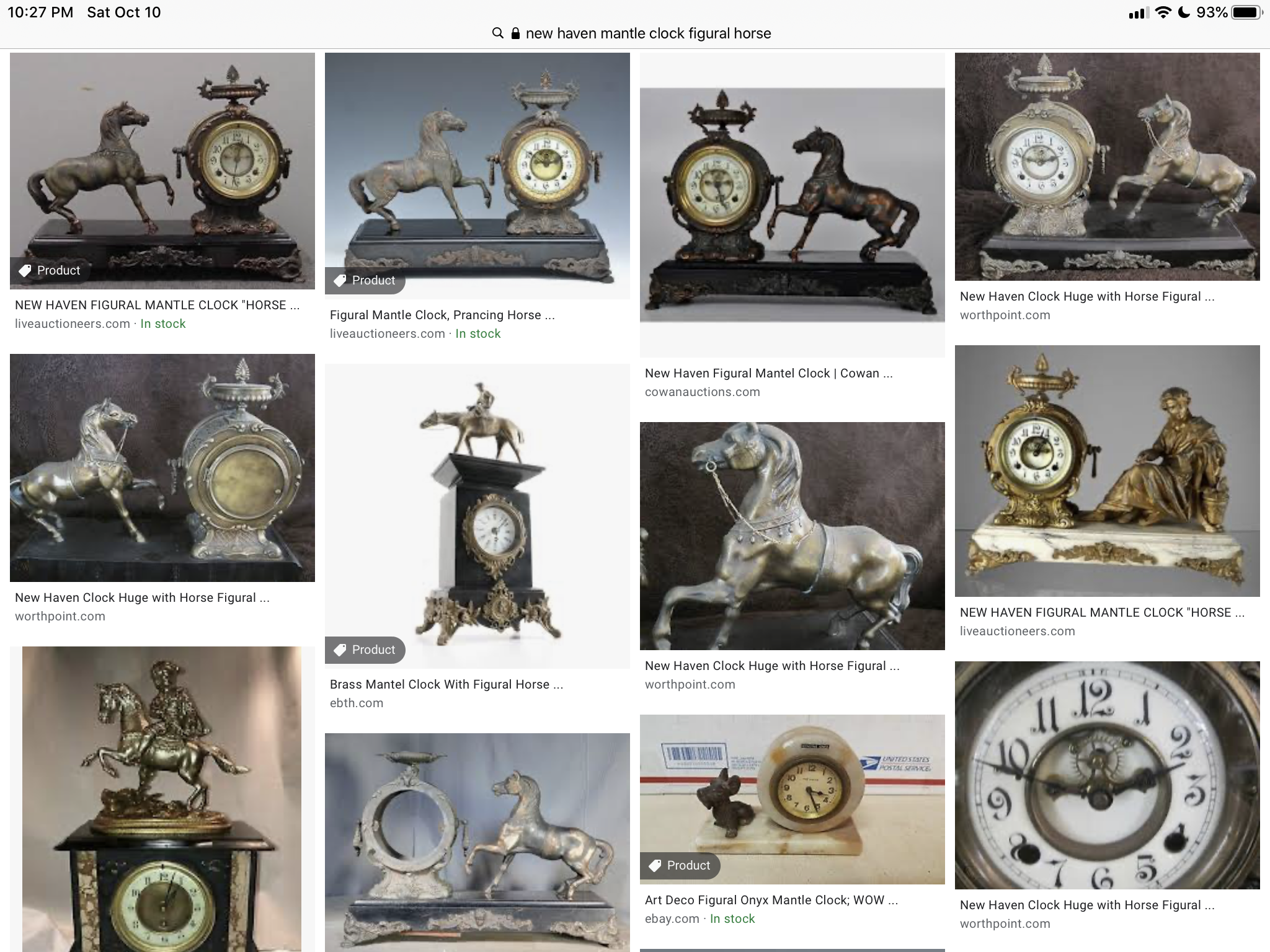 Web search results showing many horse-only New Haven Clocks