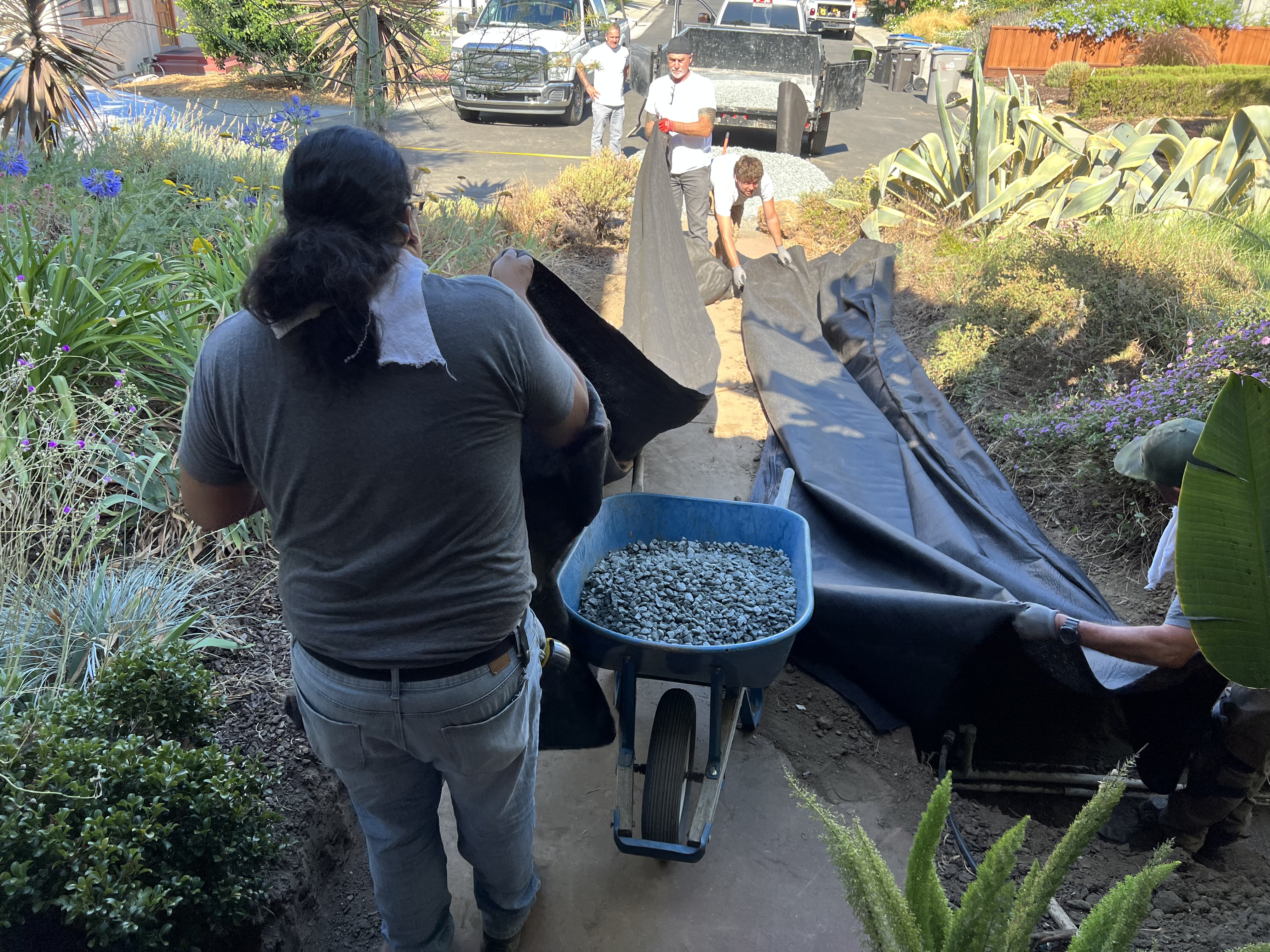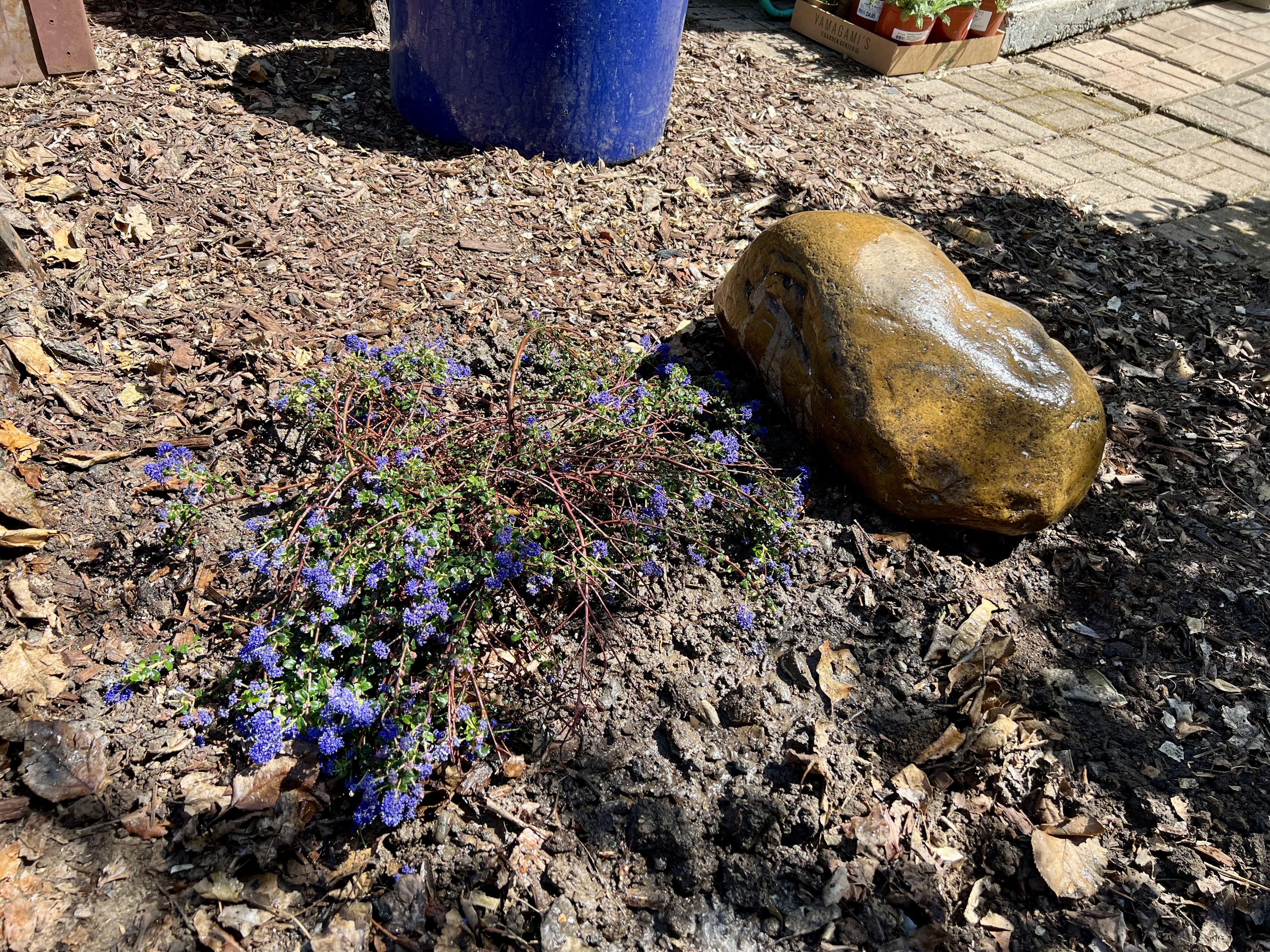 Update 24 March: I decided to go camping with Jessica and the TechWomen in Yosemite this weekend, so I planted the ceanothus Centennial in the side yard, supervised by guardian cats Princess and Ketchup. I am also moving some of garden stones into the side yard where they will be more visible.