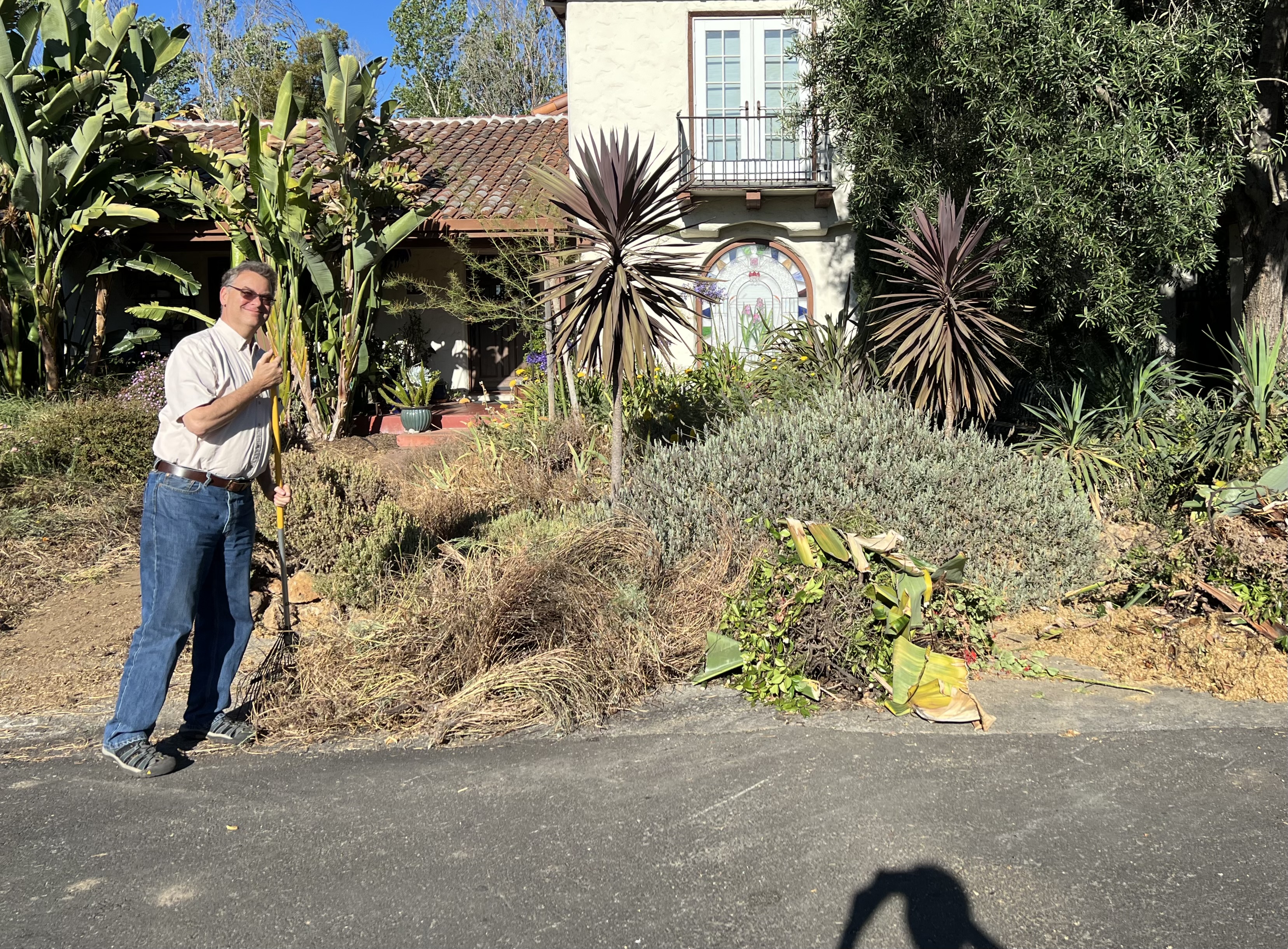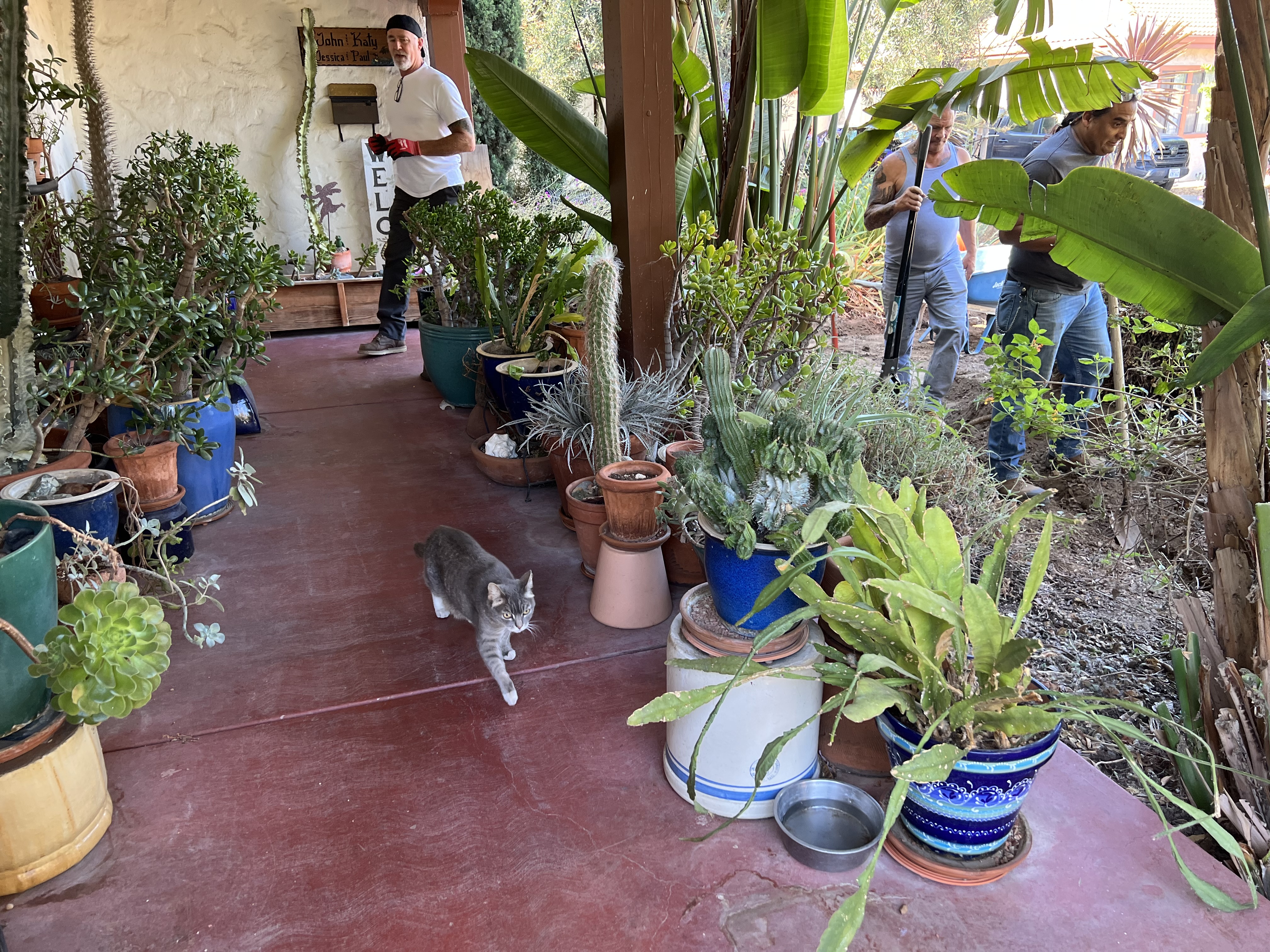 Some of maintenance challenges come from ours being an old (if well-built) house, and others from the land being part of the original Willow Glen swamp of the Guadalupe River. The ground shifts annually with seasonal moisture changes, causing stucco cracks and sometimes making doors stick. The most unhappy person with the construction has been Princess, our porch cat, who resented the disruption of her royal domain. Phase Two is being planned now!