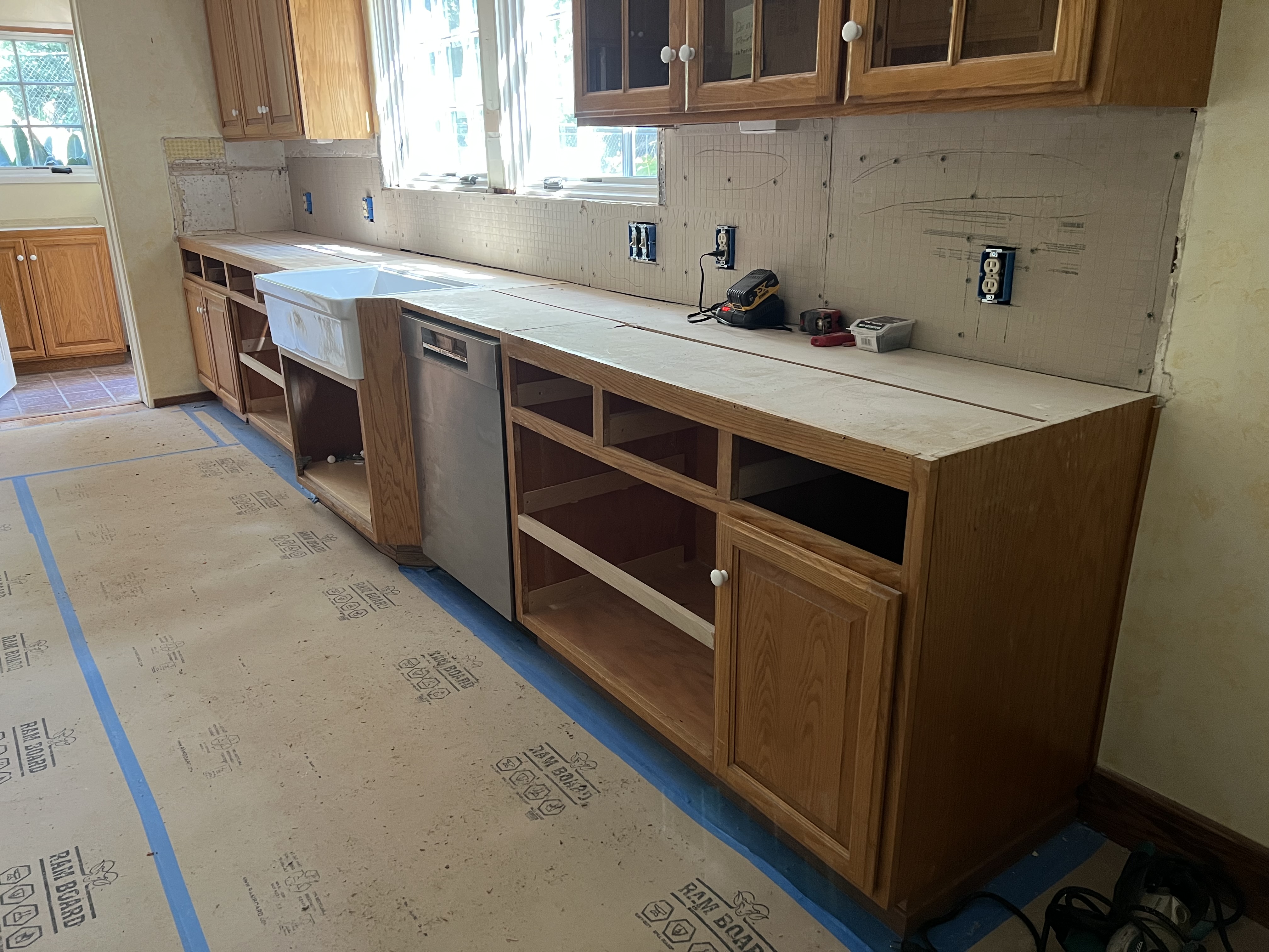 Nov 2022 John Plocher in old kitchennew kitchen stove, 31 July 2023kitchen backsplash granite slab, 17 Aug 2023kitchen granite shopping, 17 Aug 2023old kitchen 20 August 2023kitchen demolition 21 Aug 2023kitchen after counter removal, 21 Aug 2023kitchen electrical work, 22 Aug 2023kitchen with new backer boards, 24 Aug 2023John Plocher and curious dogs in kitchen 29 Aug 2023bathroom dishes 8 Sep 2023