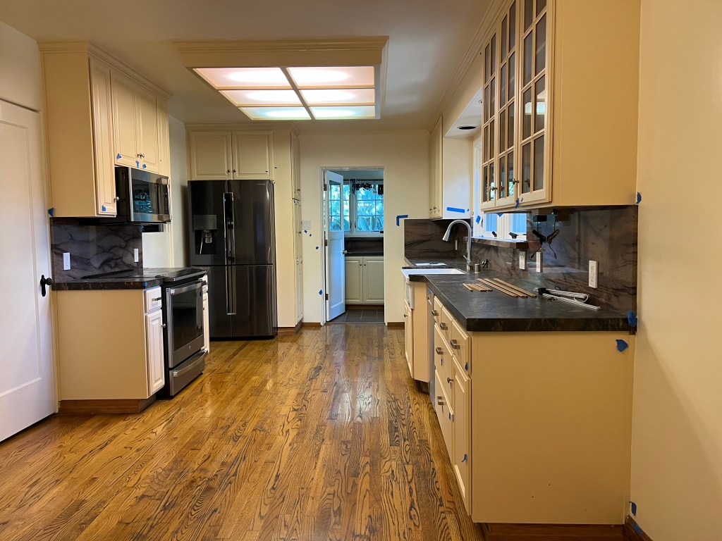 After 26 years in our home, we are updating our kitchen. Our Spanish Mission style house was built around 1931 in San Jose’s Willow Glen neighborhood (Silicon Valley, California). We think the kitchen was last remodeled after the big Loma Prieta 1989 earthquake. The kitchen is large but the layout is fixed by four doors (to John’s office, the laundry room, the basement, and the dining room).