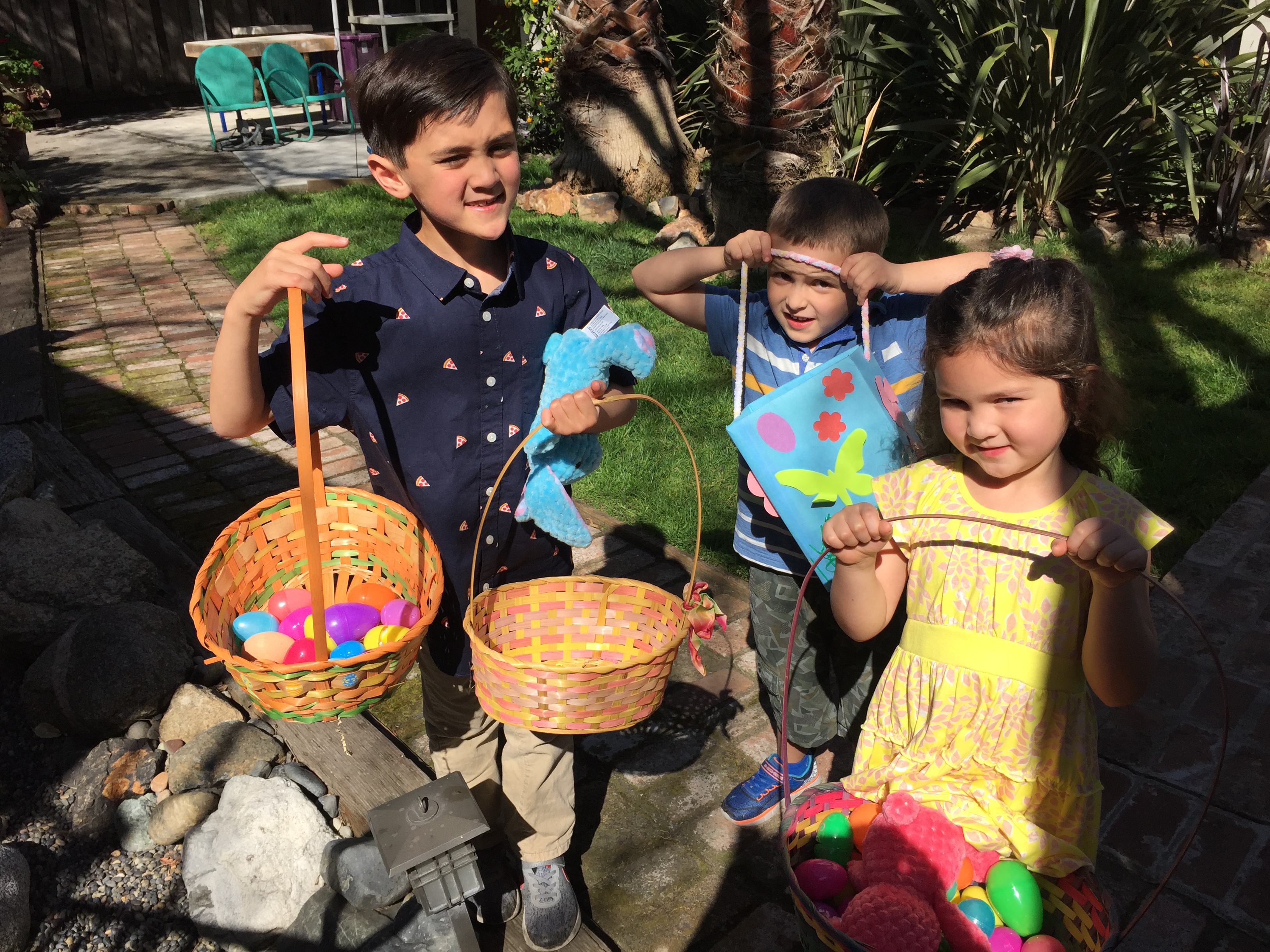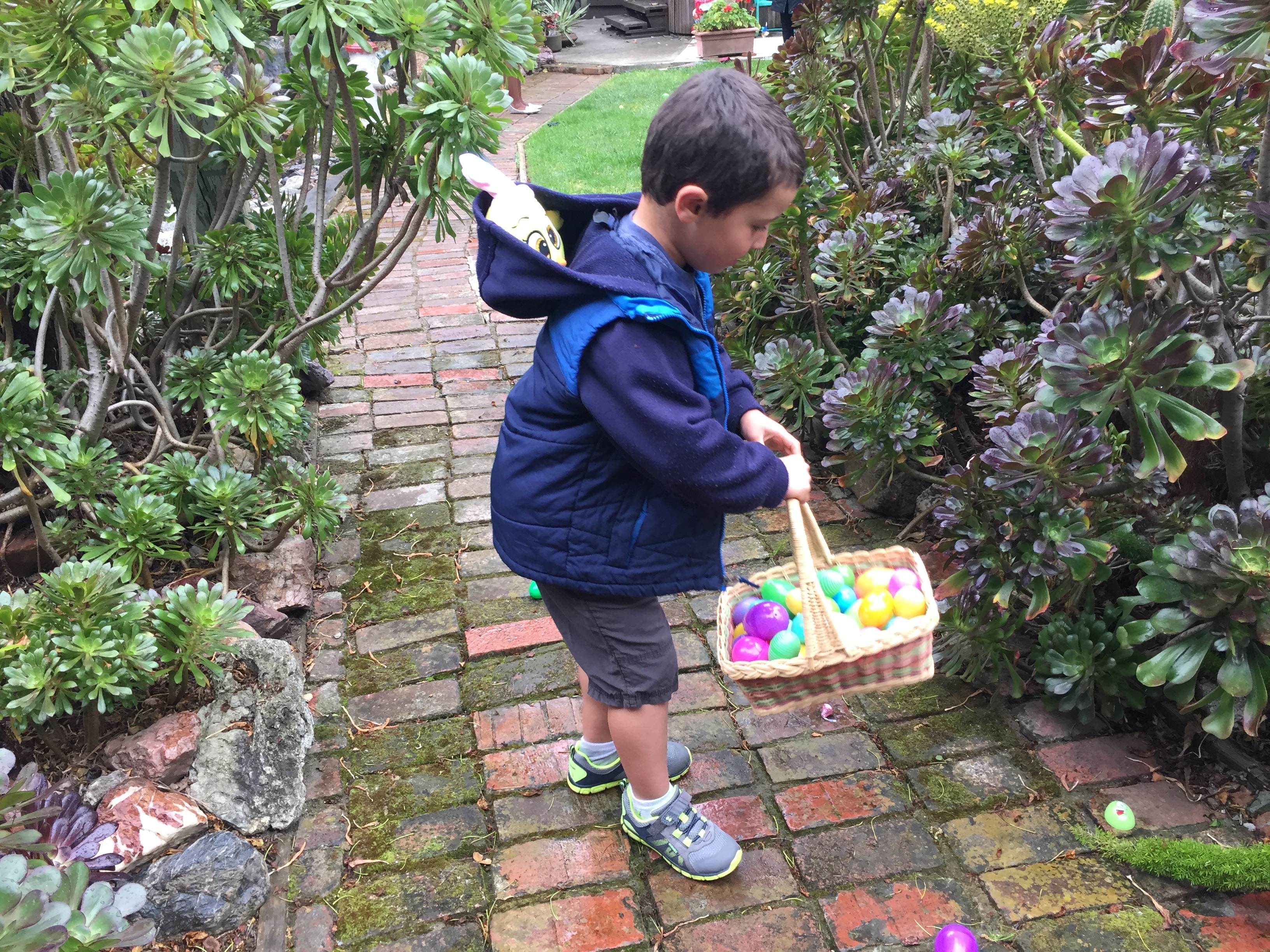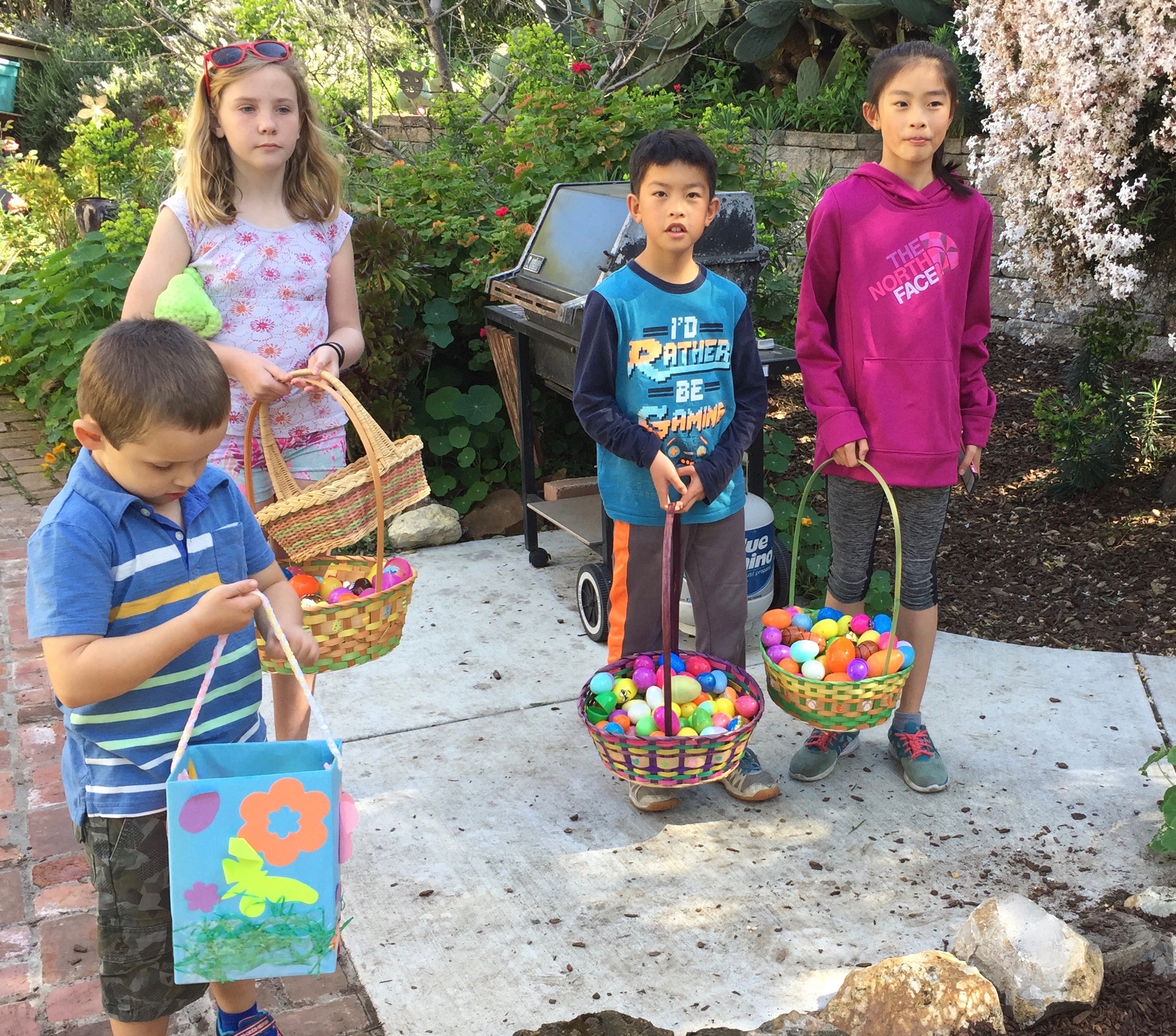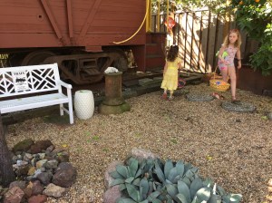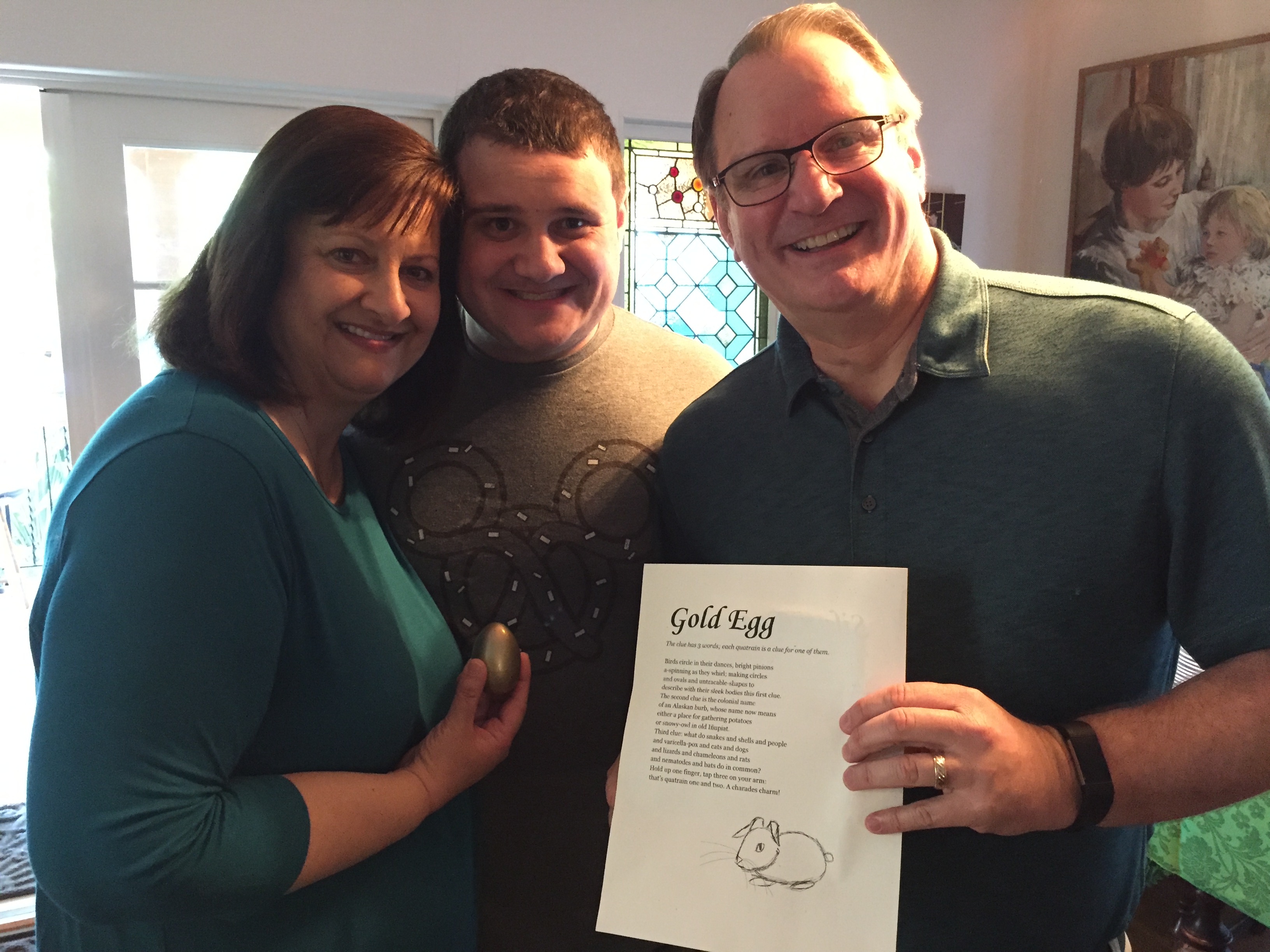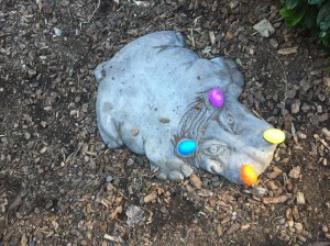 Easter was on Sunday 1 April in 2017 (also John’s Birthday!) and as usual we had friends, family, and neighbors over for a potluck brunch and Easter Egg Hunt in our back garden and on WP668. The Associate Easter Bunny wrote a very difficult set of riddles for the adults to find the Gold and Silver Eggs.